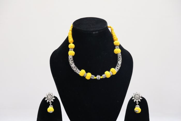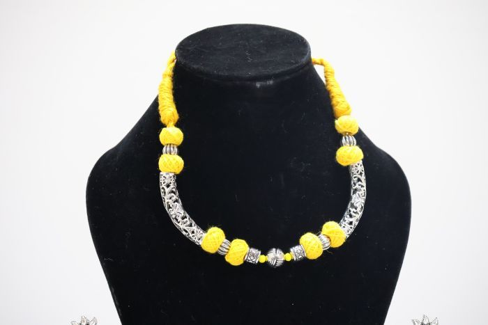 Elevate your ethnic look with this handcrafted necklace featuring a beautifully designed pendant and a vibrant yellow dori. The lightweight construction and soft thread make it comfortable for extended wear, while the adjustable tie-up ensures a perfect fit. Ideal for pairing with sarees, kurtas, or fusion outfits, this necklace brings a blend of traditional elegance and modern style. Handcrafted by SHG artisans, each piece reflects skilled craftsmanship and supports sustainable, rural livelihoods. A perfect accessory for festive occasions, cultural events, or daily ethnic wear.