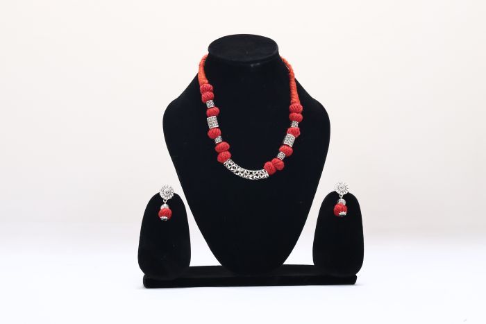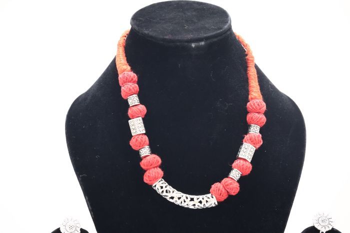 Elegant Cotton Neckpiece with Red Dori & Pipe Beads | Handcrafted Charm