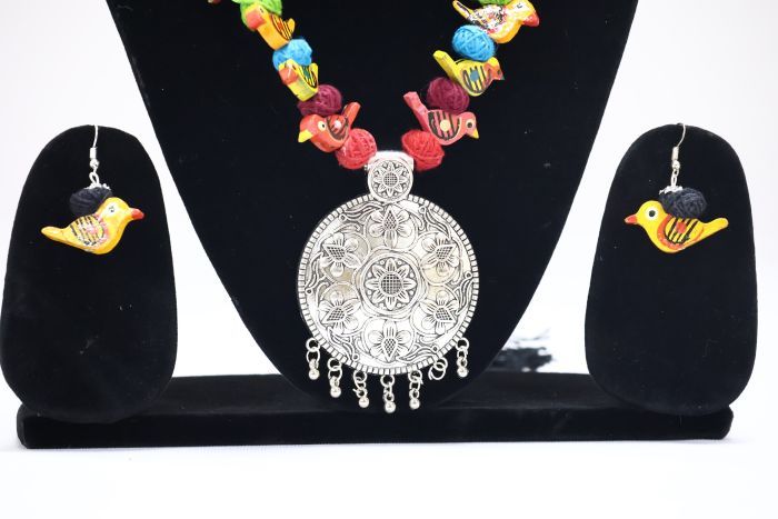 Bring a natural, coastal charm to your style with this handcrafted necklace and earring set, featuring a striking shell pendant and matching earrings. The bold red dori adds a vibrant pop of color, making it a perfect accessory for festive occasions or casual ethnic wear. Designed for comfort with a lightweight build and adjustable tie-up closure, this set blends earthy elements with traditional aesthetics. Crafted by skilled SHG artisans, each piece celebrates handmade excellence and supports sustainable livelihoods. A unique addition to your jewelry collection that tells a story of tradition and craftsmanship.