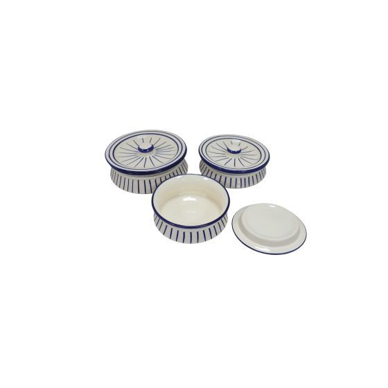 Introducing Saras Aajeevika's Khurja Pottery Donga 3-Piece Set – Line 8 (White and Blue)