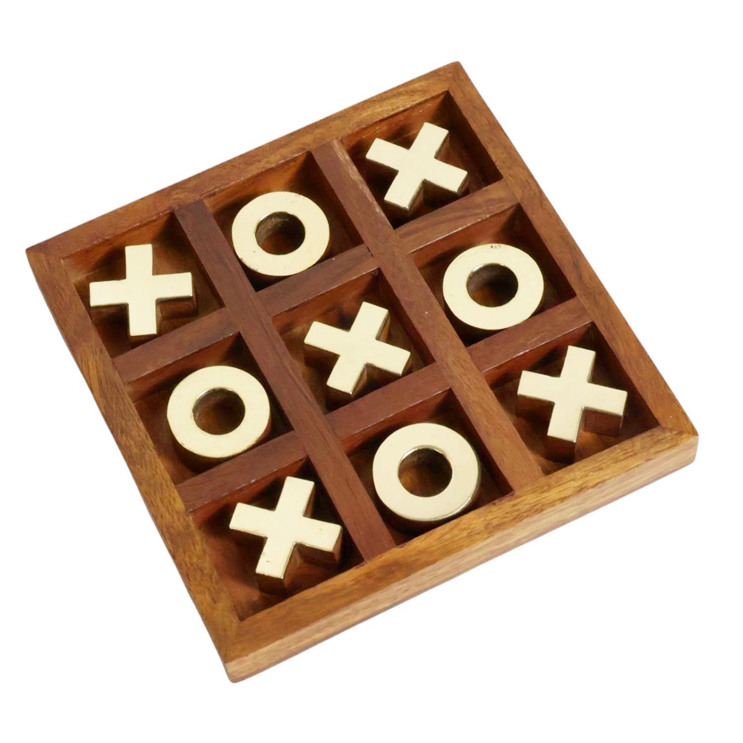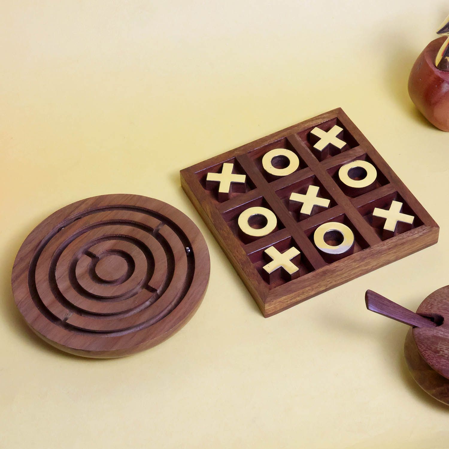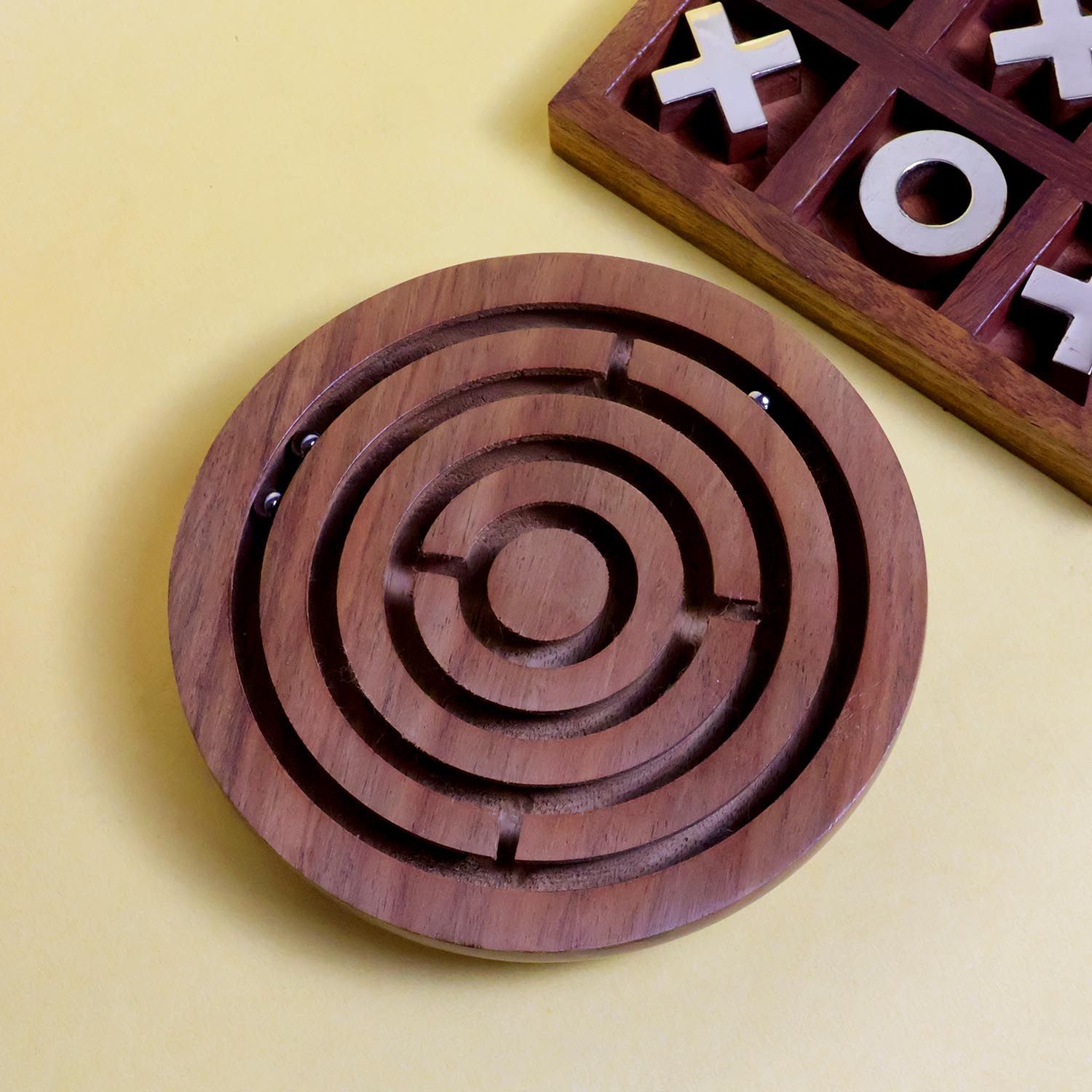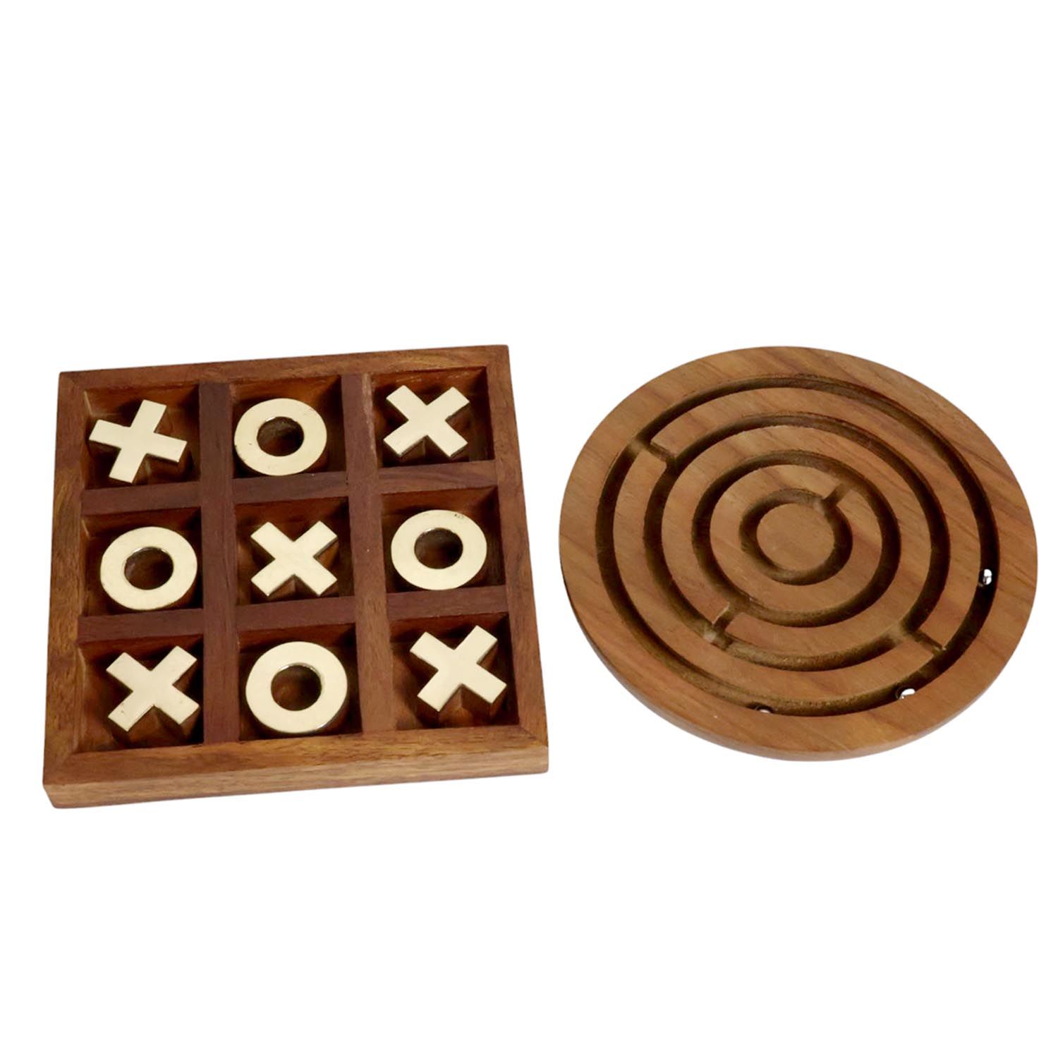 Wooden Brass Tic Tac Toe & Maze Game Combo