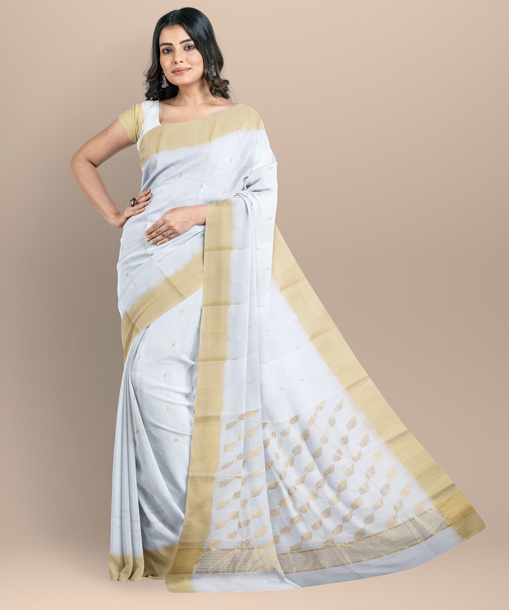 "Saras Aajeevika presenting Chanderi Patta Jal Cotton Silk Saree made by Om Sai Ram SHG of Madhya Pradesh.