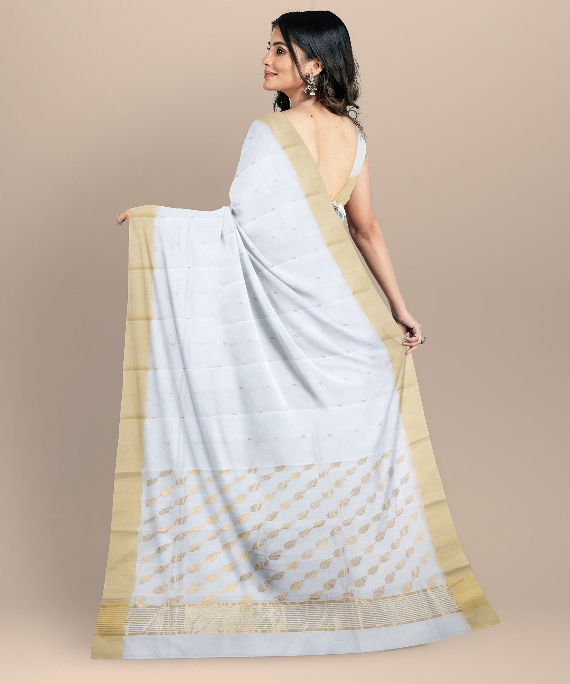 Chanderi Palla Jal || Silk Cotton Off White || 6.5 Mtr || Saras Aajeevika