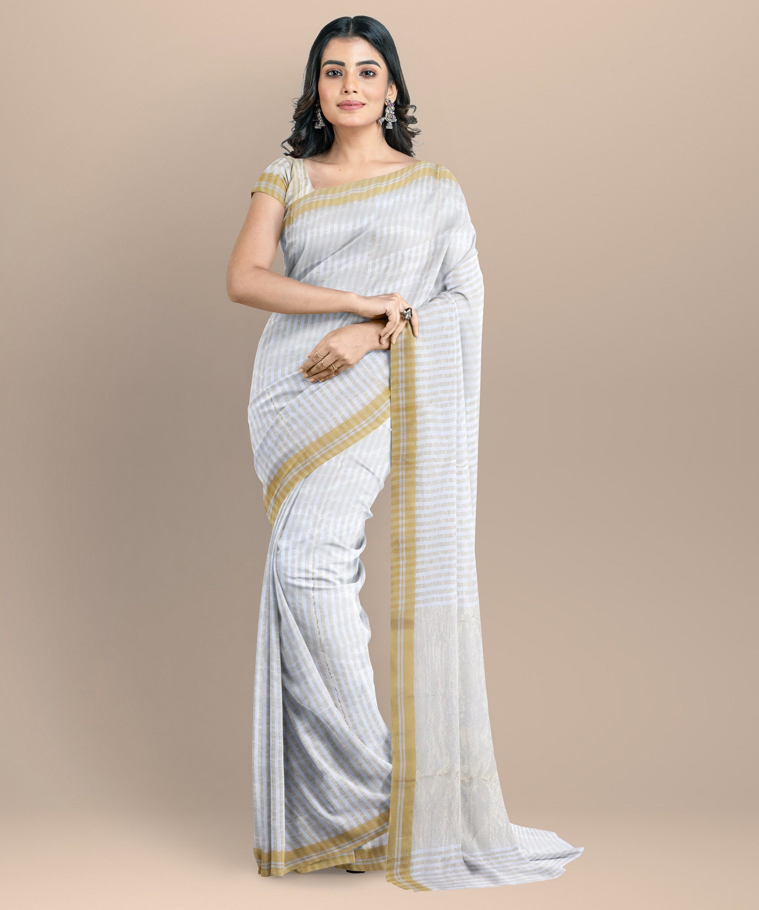 "Saras Aajeevika presenting Chanderi Strive Cotton Silk Saree made by Om Sai Ram SHG of Madhya Pradesh.
