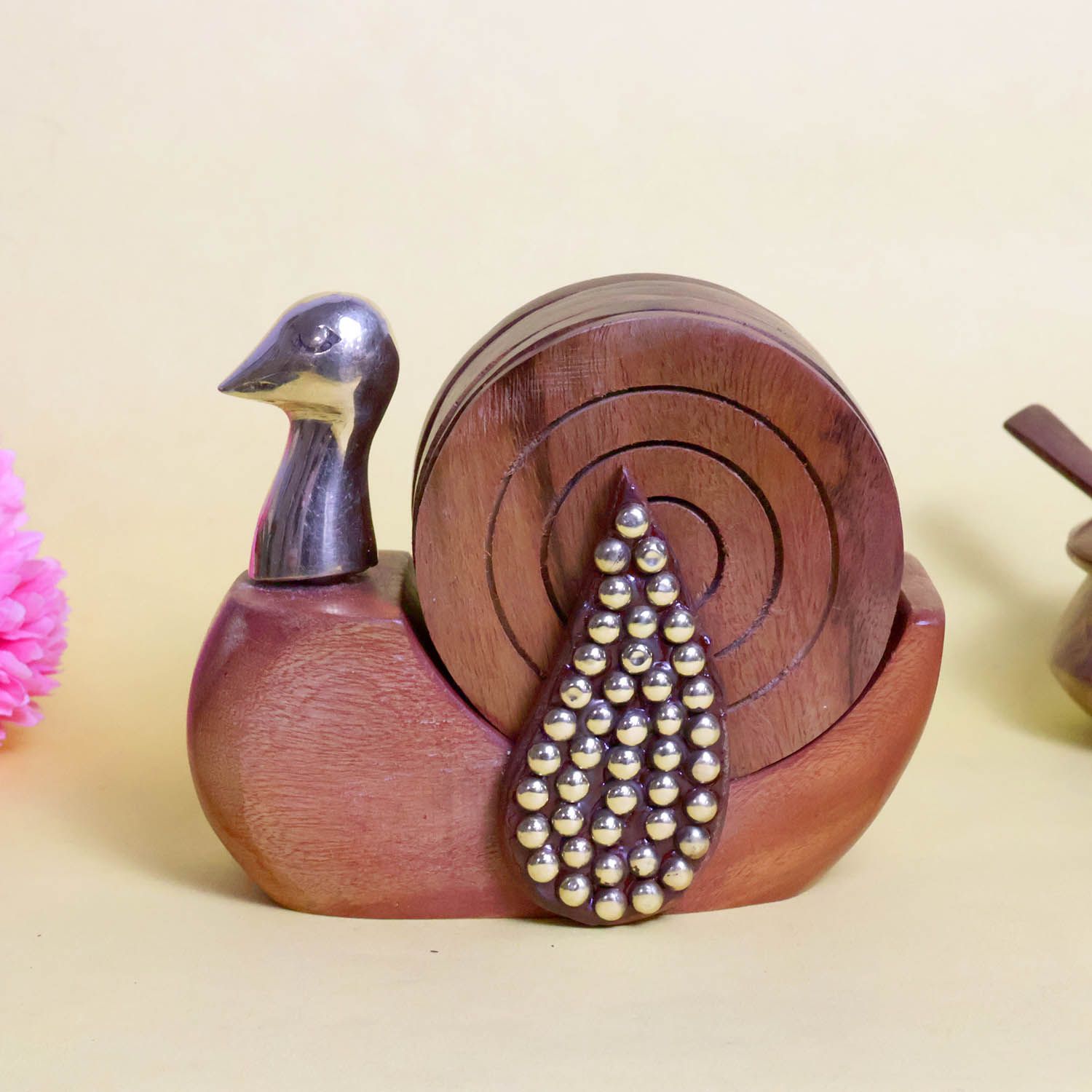 Wooden & Brass Duck Shape Coaster